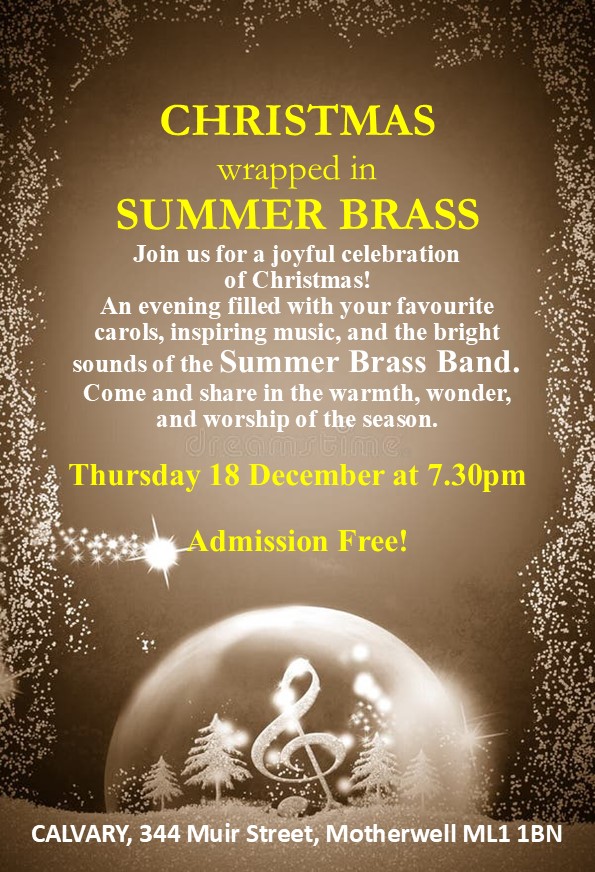 Join us for our annual evening of festive music and holiday cheer at Calvary Motherwell! Experience the magic of Christmas as Summer Brass sounds fill the church with joyful carols and seasonal favourites.